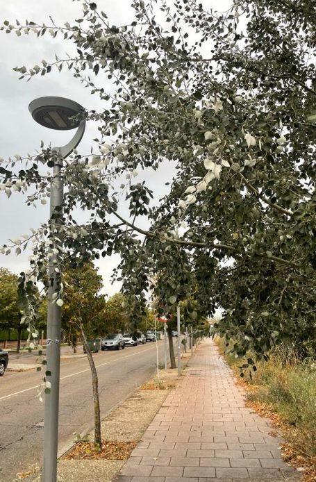 2. Revisar nuestra superficie arbolada estableciendo un trabajo de mantenimiento y de poda racional para que las ramas de los árboles no perjudiquen a nuestros vecinos y no moleste en nuestras aceras y paseos. Adaptar el modelo en trípode como el mejor “sistema tutor“ para que los árboles crezcan rectos y no se vayan torciendo y viciando como vemos en muchos de los que tenemos en nuestras calles ahora. También creemos que las variedades de prunos y bayas ocasionan muchos problemas de limpieza, habría que intentar plantar otro tipo de variedades como la paulownia, los olmos o los arces.